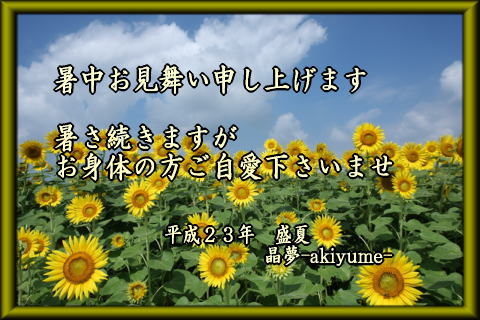 | 晶さんから戴きました。♪o(^-^o)☆(o^-^)o♪ ありがとう! 2011/08/01
