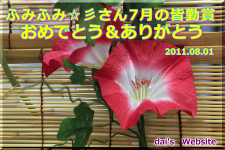 | daiさんから皆勤賞で戴きました。♪o(^-^o)☆(o^-^)o♪ ありがとう!